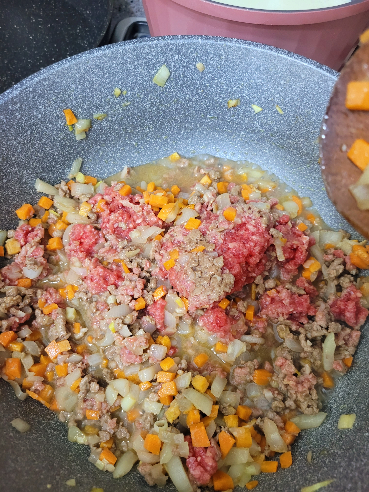 이번에는 라구소스입니다. 라구소스는 뭐냐~ 토마토소스에 다짐육을 넣고 뭉근하게 끓인 고기소스인거 같아요. 엄청 오래 30분이상 끓여야한다는데 저는 20분만에 소스가 졸아서 그냥 꺼주었는데요 왤케 맛나죠?! 대박!! 담엔 파스타소스도 라구소스로 끓여서 만들까 생각중입니다~~ 역시 시판보다는 집밥이 쵝오인거 같습니다 ❤